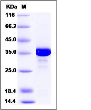 The recombinant human AKR1C2 consists of 338 amino acids and predicts a molecular mass of 38.6 KDa. It migrates as an approximately 37 KDa band in SDS-PAGE under reducing conditions.