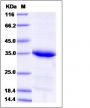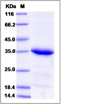 The recombinant human STX8 comprises 235 amino acids and has a predicted molecular mass of 27 kDa. The apparent molecular mass of the protein is approximately 34 kDa in SDS-PAGE under reducing conditions due to glycosylation.