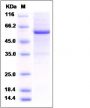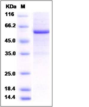 The recombinant human RYBP /GST chimera consists of 465 amino acids and has a calculated molecular mass of 52.6 kDa. The recombinant protein migrates as an approximately 58 kDa band in SDS-PAGE under reducing conditions.