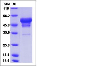 Purity > (78.6+16.8) % as determined by SDS-PAGE.