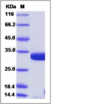 The recombinant human COASY consists of 287 amino acids and predicts a molecular mass of 32.5 KDa. It migrates as an approximately 33 KDa band in SDS-PAGE under reducing conditions.