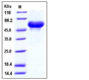 The secreted recombinant mouse ARSA consists of 500 amino acids and has a calculated molecular mass of 53.5 kDa. As a result of glycosylation, the recombinant protein migrates as an approximately 60 kDa protein in SDS-PAGE under reducing conditions.