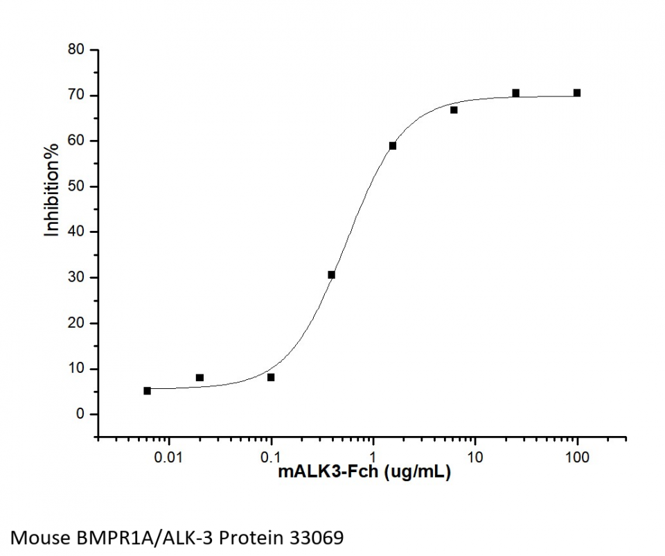 The recombinant mouse ALK3/Fc is a disulfide-linked homodimer after removal of the signal peptide. The reduced monomer consists of 376 amino acids and has a predicted molecular mass of 42 kDa. In SDS-PAGE under reducing conditions, the apparent molecular mass of rm ALK3/Fc monomer is approximately 60 kDa due to glycosylation.