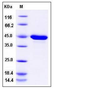 The recombinant mouse PPM1A consisting of 388 amino acids and has a calculated molecular mass of 43.3 kDa as estimated in SDS-PAGE under reducing conditions.