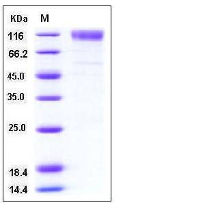 The secreted recombinant mouse SRB1/Fc is a disulfide-linked homodimer The reduced monomer comprises 656 amino acids with a predicted molecular mass of 74 kDa. As a result of glycosylation, it migrates as an approximately 115-120 kDa band in SDS-PAGE under reducing conditions.