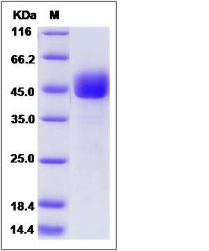 The recombinant mouse CD3D/Fc is a disulfide-linked homodimer. The reduced monomer comprises 325 amino acids and has a predicted molecular mass of 36.4 kDa. The apparent molecular mass of the protein is approximately 44-48 kDa in SDS-PAGE under reducing conditions due to glycosylation.