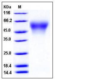 The recombinant mouse CD34 consists of 264 amino acids and has a predicted molecular mass of 28.6 kDa. In SDS-PAGE under reducing conditions, the apparent molecular mass of rmCD34 is approximately 50-60 kDa due to glycosylation.