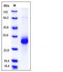 The secreted recombinant mouse ADIPOQ comprises 241 amino acids and has a calculated molecular mass of 26.4 kDa. As a result of glycosylation, the recombinant protein migrates as an approximately 30 kDa band in SDS-PAGE under reducing conditions.