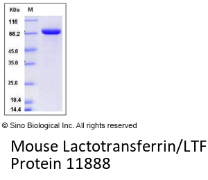 The secreted recombinant mouse LTF comprises 699 amino acids and has a calculated molecular mass of 77.2 kDa. The apparent molecular mass of the recombinant protein is approximately 70 kDa in SDS-PAGE under reducing conditions.