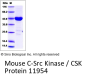 The recombinant mouse CSK consists of 452 amino acids and predicts a molecular mass of 50.9 KDa. It migrates as an approximately 46 KDa band in SDS-PAGE under reducing conditions.