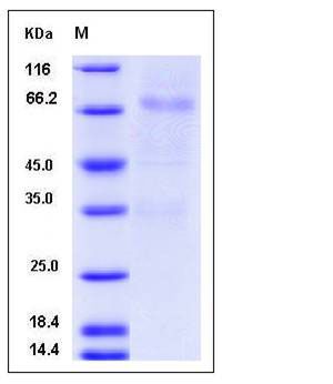 The secreted recombinant mouse GFRA3 Fc is a disulfide-linked homodimer. The reduced monomer comprises 592 amino acids and has a calculated molecular mass of 66.2 kDa. The apparent molecular mass of rmGFRA3/Fc monomer is approximately 70 kDa in SDS-PAGE under reducing conditions.