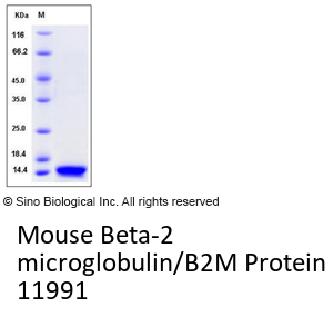 The secreted recombinant mouse B2M comprises 110 amino acids and has a calculated molecular mass of 13 kDa. The apparent molecular mass of rmB2M is approximately 15 kDa in SDS-PAGE under reducing conditions.