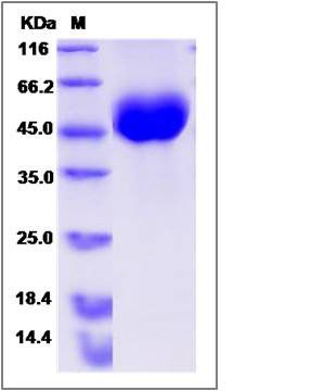 The recombinant mouse OPCML comprises 295 amino acids and has a predicted molecular mass of 32.7 kDa. The apparent molecular mass of the protein is approximately 44-55 kDa in SDS-PAGE under reducing conditions due to glycosylation.