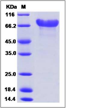 The recombinant mouse CD320 comprises 421 amino acids and has a predicted molecular mass of 46.5 kDa. The apparent molecular mass of the protein is approximately 72.5 kDa in SDS-PAGE under reducing conditions.