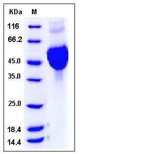 The secreted recombinant influenza A H6N1 HA1 subunit (A/northern shoveler/California/HKWF115/2007 (H6N1)) comprises 339 amino acids and has a predicted molecular mass of 38 kDa. As a result of glycosylation, the apparent molecular mass of the protein is approximately 45-55 kDa in SDS-PAGE under reducing conditions.