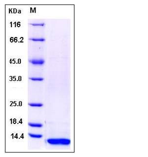 The recombinant influenza A H1N1 Virus (A/Puerto Rico/8/34/Mount Sinai) NS2 protein comprises 121 amino acids and has a predicted molecular mass of 14.4 kDa. It migrates as an approximately 13 kDa band in SDS-PAGE under reducing conditions.