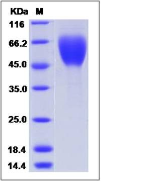 The recombinant Sudan ebola virus (strain Uganda-00) GP comprises 299 amino acids and has a predicted molecular mass of 33.8 kDa. The apparent molecular mass of the protein is approximately 46-64 kDa in SDS-PAGE under reducing conditions.