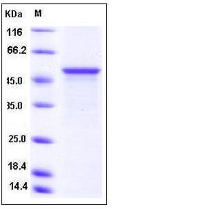 The recombinant Cynomolgus p53 consisting of 393 amino acids and has a calculated molecular mass of 43.7 kDa. It migrates as an approximately 48 kDa band in SDS-PAGE under reducing conditions.
