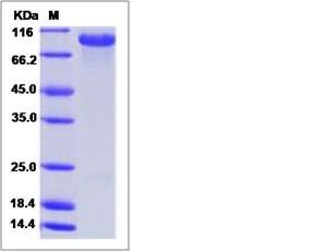 The recombinant rhesus ERBB3 consists 631 amino acids and predicts a molecular mass of 69.5 kDa.