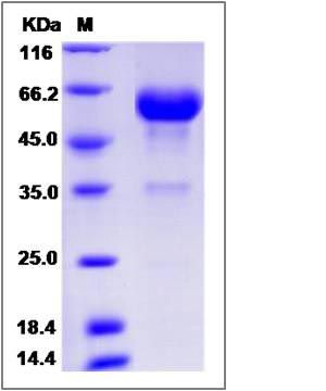 The recombinant cynomolgus ACVR2B comprises 357 amino acids and has a calculated molecular mass of 40.3 KDa.The apparent molecular mass of the protein is approximately 54-62 KDa in SDS-PAGE.