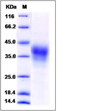 The recombinant heterodimer of cynomolgus TNFSF8 comprises 192 amino acids and has a calculated molecular mass of 22 KDa. The apparent molecular mass of the protein is approximately 38 KDa respectively in SDS-PAGE.