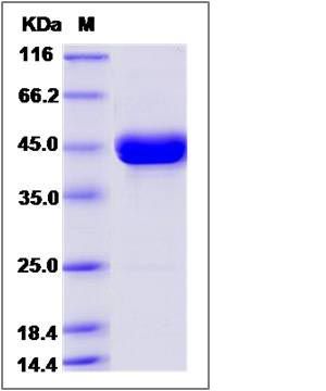 The recombinant cynomolgus REG1A comprises 385 amino acids and has a calculated molecular mass of 43.2 KDa. The apparent molecular mass of it is approximately 44 KDa respectively in SDS-PAGE.