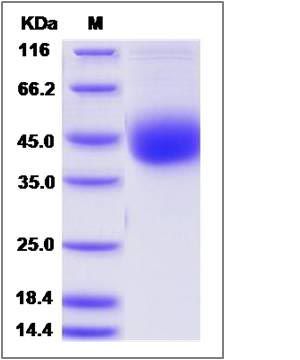 The recombinant cynomolgus ART4 comprises 250 amino acids and has a calculated molecular mass of 29.1 KDa. The apparent molecular mass of it is approximately 41-46 KDa in SDS-PAGE under reducing conditions.