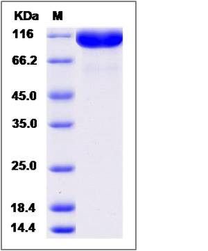 The recombinant cynomolgus PTGFRN comprises 816 amino acids and has a calculated molecular mass of 91.5 KDa. The apparent molecular mass of it is approximately 96-106 KDa in SDS-PAGE under reducing conditions.