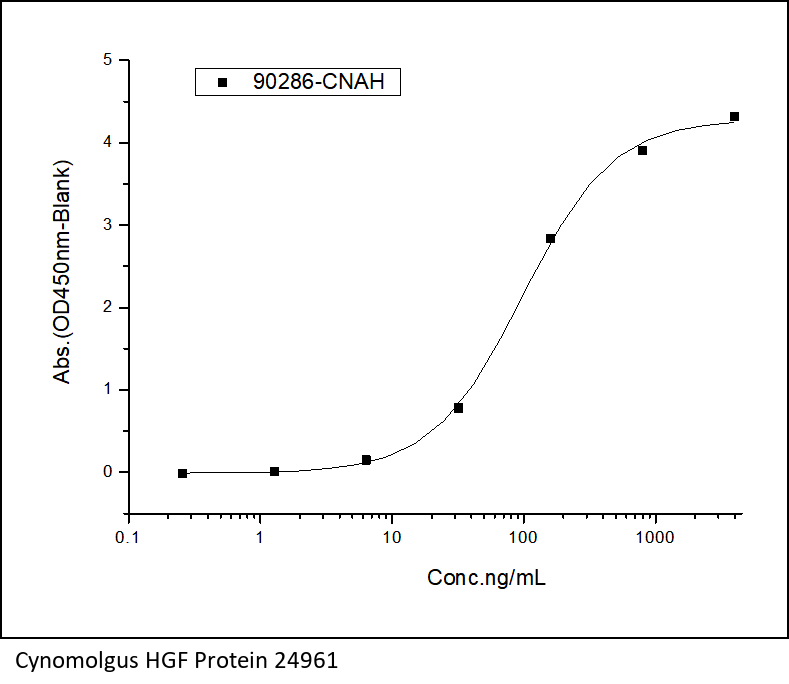 1. Immobilized Cynomolgus HGF at 10 ug/ml (100 ul/well) can bind Cynomolgus MET-Fc (cat:90304-C02H), EC50 of Cynomolgus MET-Fc (cat:90304-C02H) is 0.04-0.09 ug/ml.
