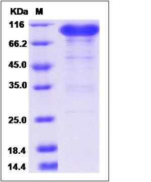The recombinant cynomolgus NRP1 comprises 833 amino acids and has a calculated molecular mass of 93.7 KDa.The apparent molecular mass of the protein is approximately 94 KDa in SDS-PAGE.