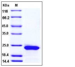 The recombinant rat RBP4 comprises 194 amino acids and predicts a molecular mass of 22.8 kDa. The apparent molecular mass of the rat RBP4 is approximately 24 kDa in SDS-PAGE under reducing conditions.