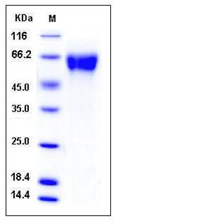 The recombinant rat GFRA1 comprises 432 amino acids and predicts a molecular mass of 48 kDa. The apparent molecular mass of the rat GFRA1 is approximately 58-65 kDa in SDS-PAGE under reducing conditions due to glycosylation.