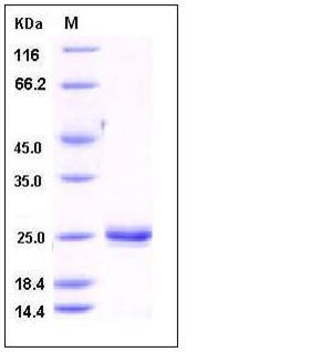 The recombinant rat LCN2 comprises 188 amino acids with and has a predicted molecular mass of 21.9 kDa. It migrates as an approximately 25 kDa band in reduced SDS-PAGE.