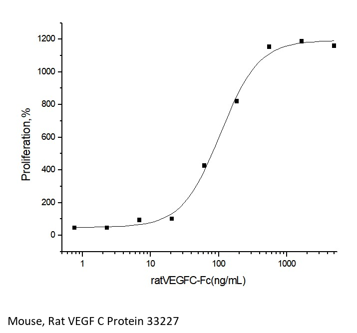 A DNA sequence encoding the rat VEGFC (O35757) (Ala108-Arg223) was expressed, fused with the Fc region of human IgG1 at the N-terminus.