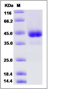 The recombinant rat ACVR1/Fc is a disulfide-linked homodimer. The reduced monomer comprises 344 amino acids and has a predicted molecular mass of 38.5 kDa. The apparent molecular mass of the protein is approximately 43 kDa in SDS-PAGE under reducing conditions.