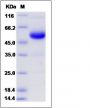 The recombinant rat CD40/Fc is a disulfide-linked homodimer. The reduced monomer comprises 415 amino acids and has a predicted molecular mass of 46.2 kDa. The apparent molecular mass of the protein is approximately 53 kDa in SDS-PAGE under reducing conditions.
