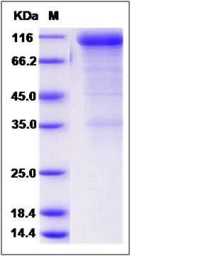 The recombinant rat CD36/Fc is a disulfide-linked homodimer. The reduced monomer comprises 651 amino acids and has a predicted molecular mass of 73.3 kDa. The apparent molecular mass of the protein is approximately 108 kDa in SDS-PAGE under reducing conditions.