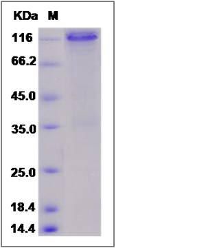 The recombinant rat CDH1/Fc is a disulfide-linked homodimer. The reduced monomer comprises 931 amino acids and has a predicted molecular mass of 103.8 kDa. The apparent molecular mass of the protein is approximately 116 kDa in SDS-PAGE under reducing conditions