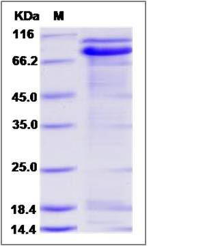 The recombinant rat CDH1 comprises 702 amino acids and predicts a molecular mass of 78.4 kDa. The apparent molecular mass of the recombinant protein is approximately 79 kDa in SDS-PAGE under reducing conditions due to glycosylation.