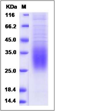 The recombinant rat CD47 comprises 133 amino acids and predicts a molecular mass of 15.2 kDa. The apparent molecular mass of the recombinant protein is approximately 27-35 kDa in SDS-PAGE under reducing conditions due to glycosylation.