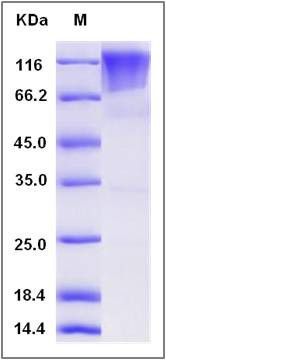 The recombinant rat CD68/Fc is a disulfide-linked homodimer. The reduced monomer comprises 517 amino acids and has a predicted molecular mass of 56.5 kDa. The apparent molecular mass of the protein is approximately 87-117 kDa in SDS-PAGE under reducing conditions.
