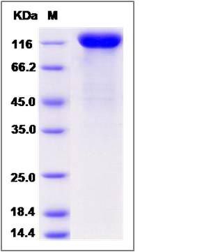 The recombinant rat LIFR comprises 797 amino acids and predicts a molecular mass of 90 kDa. The apparent molecular mass of the recombinant protein is approximately 116 kDa in SDS-PAGE under reducing conditions due to glycosylation.