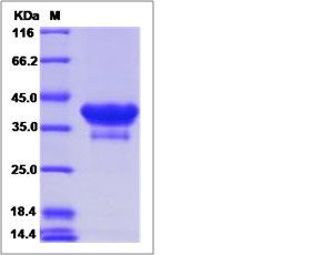 Purity > (83.0+15.4)% as determined by SDS-PAGE.