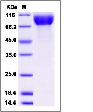 The recombinant rat PDGFRA comprises 511 amino acids and predicts a molecular mass of 57.6 kDa. The apparent molecular mass of the recombinant protein is approximately 70-110 kDa in SDS-PAGE under reducing conditions.