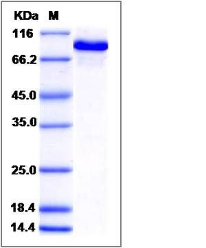 The recombinant rat TF comprises 690 amino acids and predicts a molecular mass of 76 kDa. The apparent molecular mass of the recombinant protein is approximately 89 kDa in SDS-PAGE under reducing conditions.