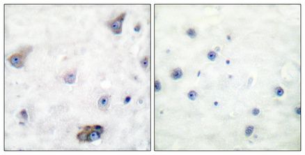 Phospho-GABAA R Beta 1 (S434) Polyclonal Antibody detects endogenous levels of GABAA R Beta 1 protein only when phosphorylated at S434.