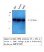 The antiserum was produced against synthesized peptide derived from the human Cyclin A at the amino acid range 221-270