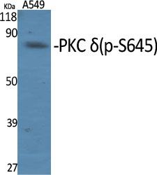 Phospho-PKC Delta (S645) Polyclonal Antibody detects endogenous levels of PKC Delta protein only when phosphorylated at S645.