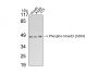 The antiserum was produced against synthesized peptide derived from the human Smad3 around the phosphorylation site of Ser204 at the amino acid range 170-219