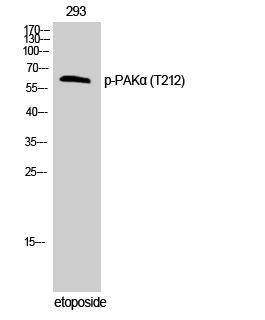 Phospho-PAK Alpha (T212) Polyclonal Antibody detects endogenous levels of PAK Alpha protein only when phosphorylated at T212.